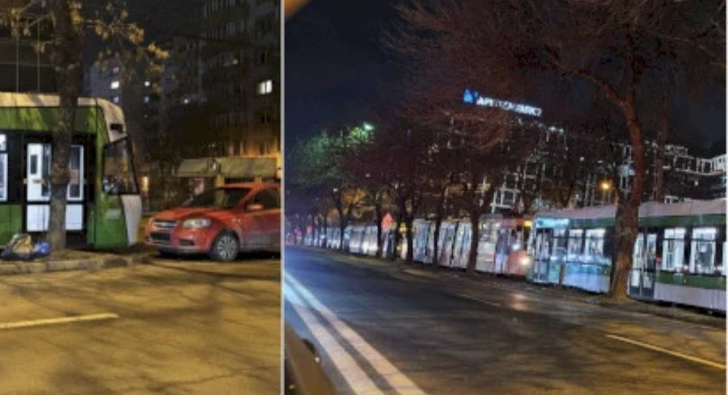 Seară de coșmar pentru bucureștenii care au circulat cu tramvaiul. Pe Trafic Greu a fost o coadă imensă de tramvaie care nu au putut inainta din cauza unui șofer miserupist care a parcat mașina pe linia de tramvai.