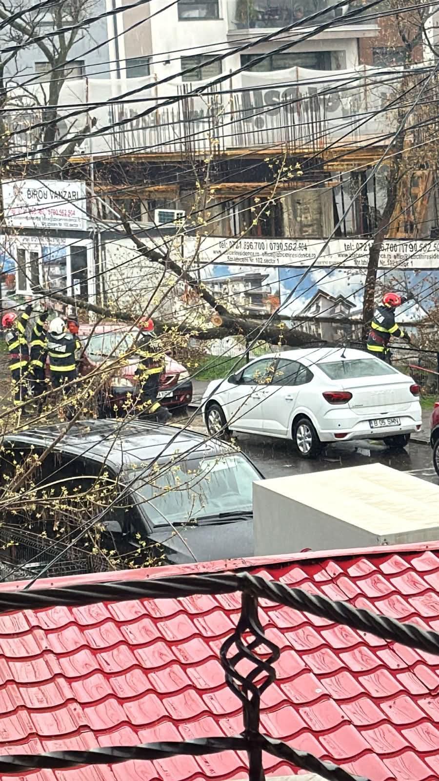 Imaginile surprinse la fața locului arată mai mulți pompieri intervenind pentru îndepărtarea copacului căzut, în timp ce mai multe cabluri sunt vizibile în zonă, iar circulația pare îngreunată. La intervenție ar fi participat și o firmă chemată să ridice arborele.