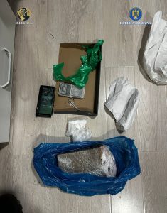 În această dimineață, la momentul efectuării perchezițiilor, unul dintre suspecți a fost prins în flagrant în timp ce deținea asupra sa 17 doze de cocaină și la scurt timp după ce comercializase o doză unui client.